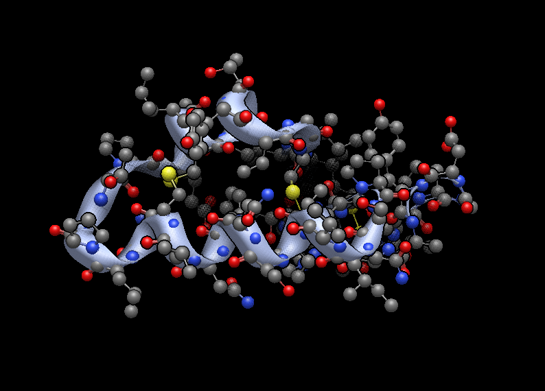 If the direct import doesn’t work, you can also use the website yourself. Go to http://www.rcsb.org/ and select a protein, then download the “PDB File (text)” format of the file. From your downloads folder you can either drag and drop the file onto an Avogadro display screen, or drag and drop the file over the Avogadro application icon.