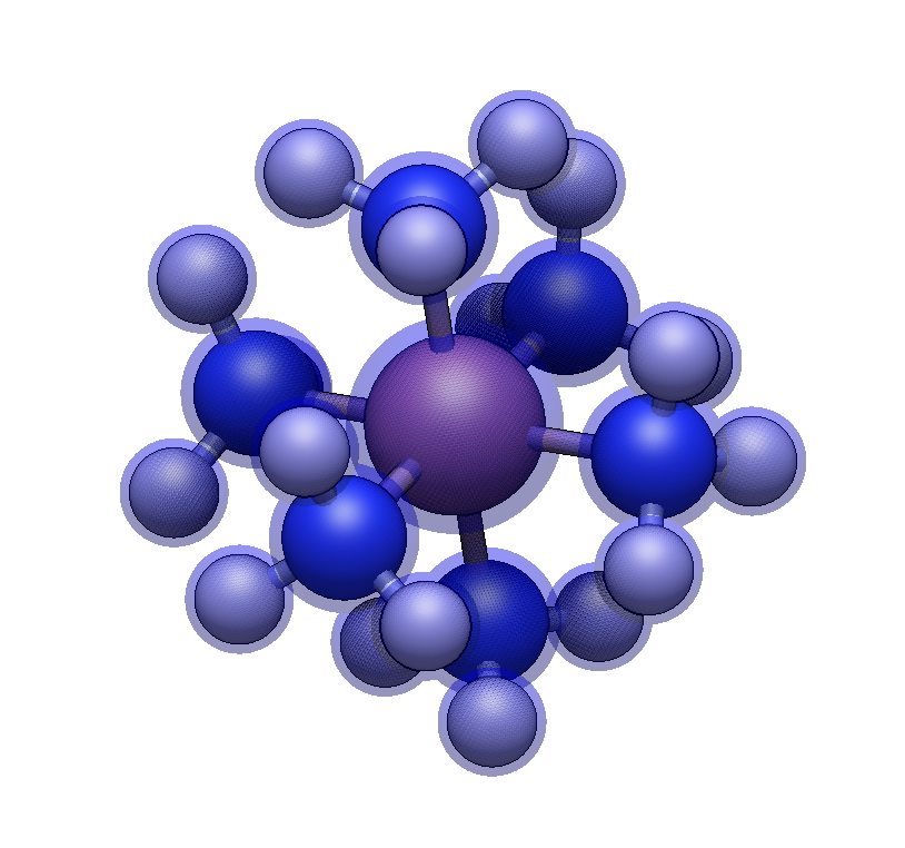 Click in empty space to place the cobalt center. Six hydrogen atoms will appear at the coordination sites.